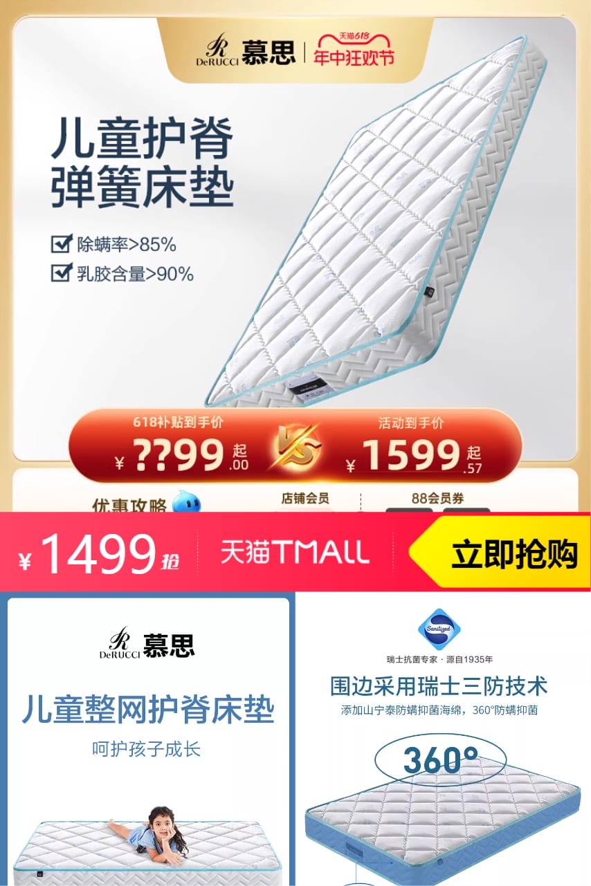 【百亿下单到手1499,3期免息,叠加88VIP消费券到手1399】【百亿】慕思乳胶床垫护脊弹簧家用1.2m,双核护脊远离,默挈守卫成长脊梁,防螨效果更佳~