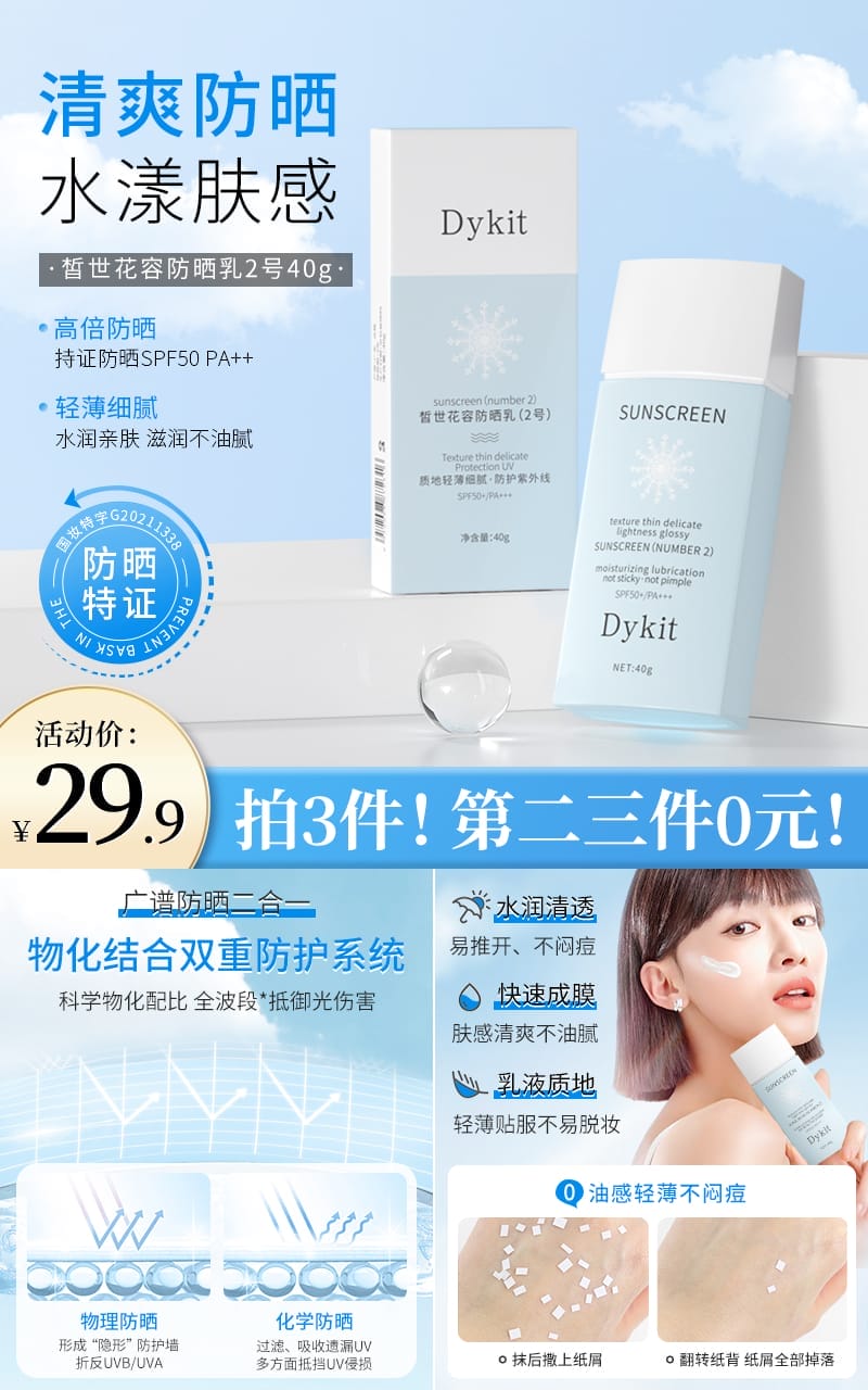 拍3件!【Dykit】皙世花容防晒乳