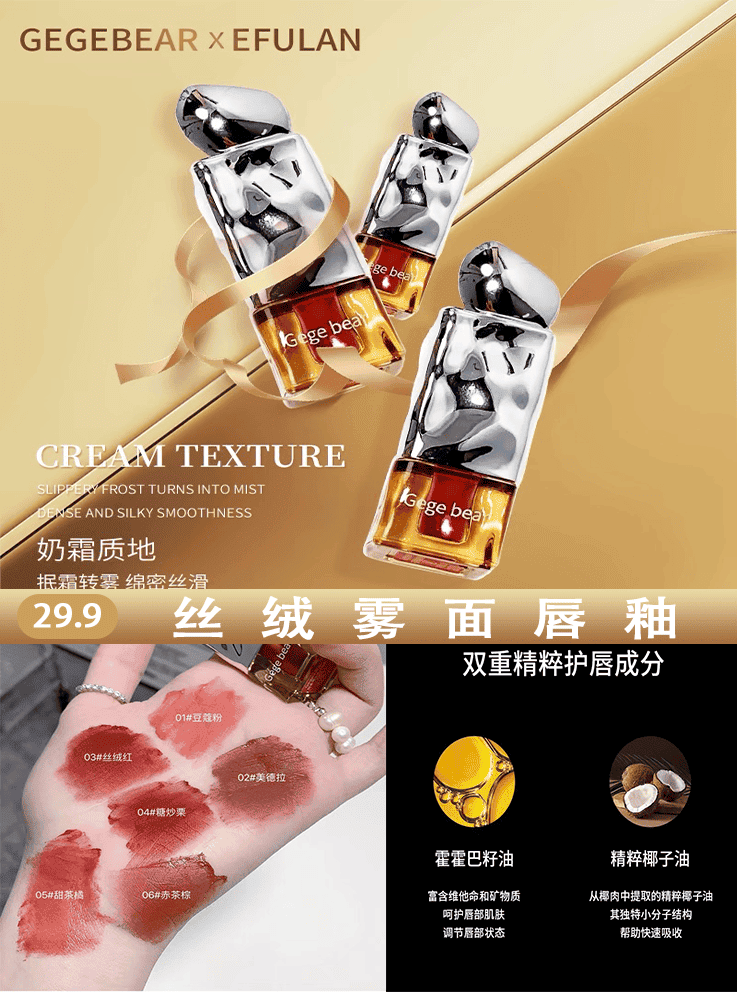 拍两件【娥芙兰】gegebear奶咖丝绒唇釉