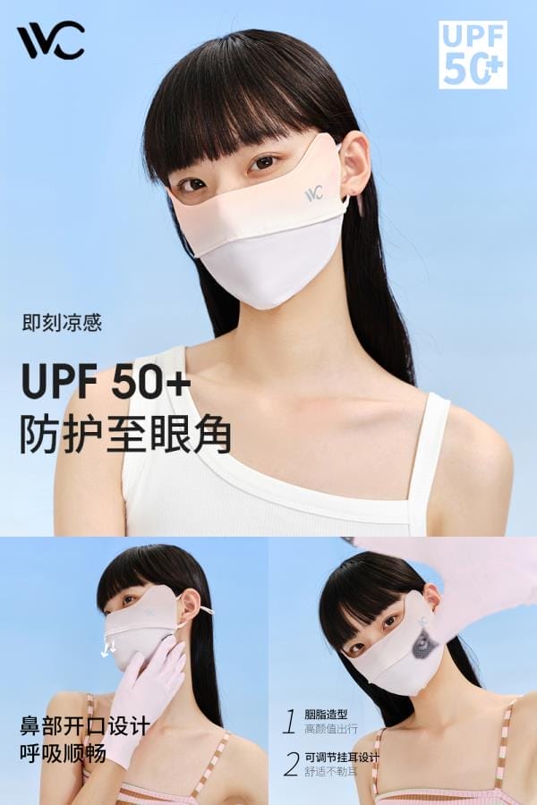 (实付满299元赠VVC防晒喷雾150ml)薄系列护眼防晒口罩,UPF50+高倍数防晒,科技防晒面料,防晒至眼角,有效阻隔95%以上紫外线,质地轻薄,元气渐变腮红,,透气不闷,护眼角的同时修饰脸颊,避免晒伤及光老化,立体挺括显脸小!