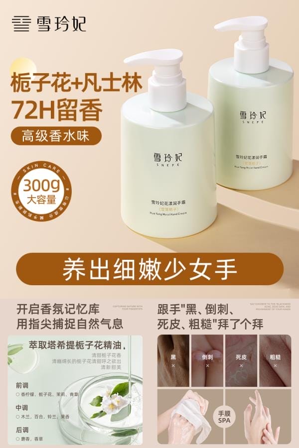 【满减300-50凑单18.2】国货之光雪玲妃,线下屈臣氏同款同售,300g可用一年!栀子花+凡士林,清爽不油腻,72h留香,深度补水,充盈手部肌肤营养,急救润燥,细腻柔嫩,补水防干裂,长效呵护,嫩肤不油腻,硬核见证焕肤。