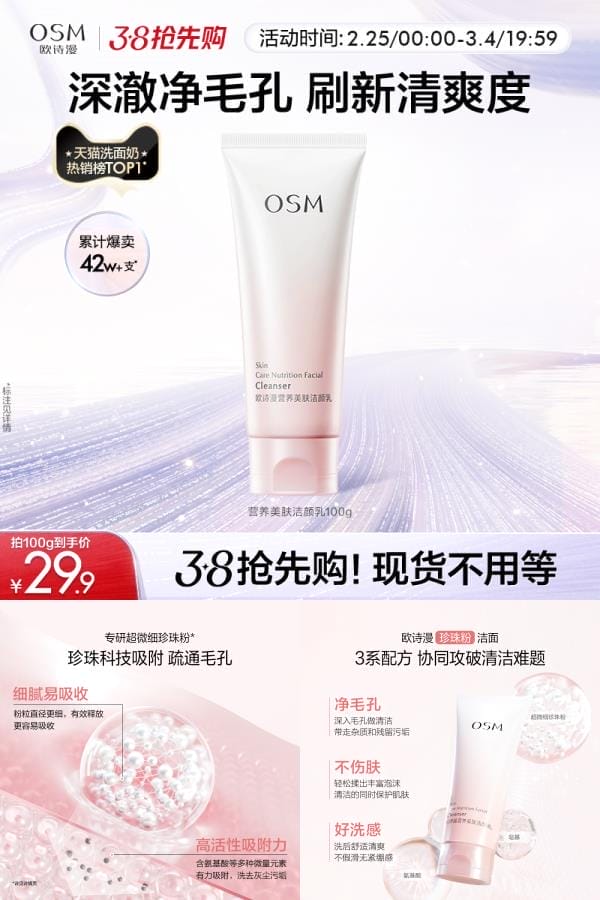 【下单拍100g的选项,拍2件,第二件0元!券后19.8元到手100g*2支正装!】折单支才9.9米!!!欧诗漫简直太有实力了姐妹们~温润净肤,清爽洁颜,吸附污垢,畅通毛孔!气泡快,泡沫密,摩擦少!【赠运费险】