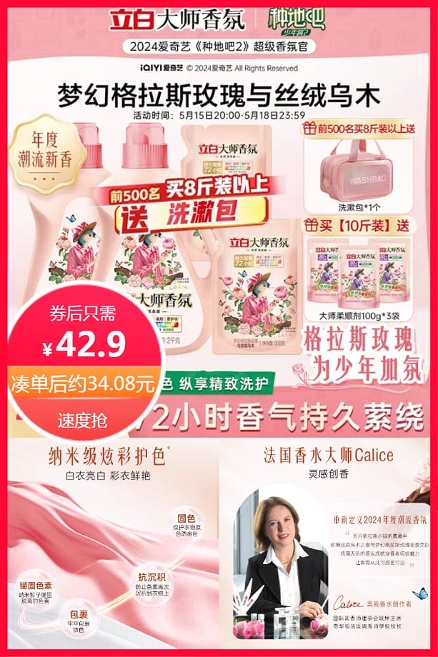叠加300-50+88vip更实惠,前1000名2瓶装送绿色心心珠23颗*1盒,续航前500名买2盒装送洗漱包,直播闪赠:财神手机支架500份【4斤装:1kg*1瓶】立白大师香氛乌木玫瑰洗衣液,留香72小时,纳米护色科技,炫彩护色,衣服亮丽如新,天然酵素,深层洁净,柔软养护,护衣更护手~