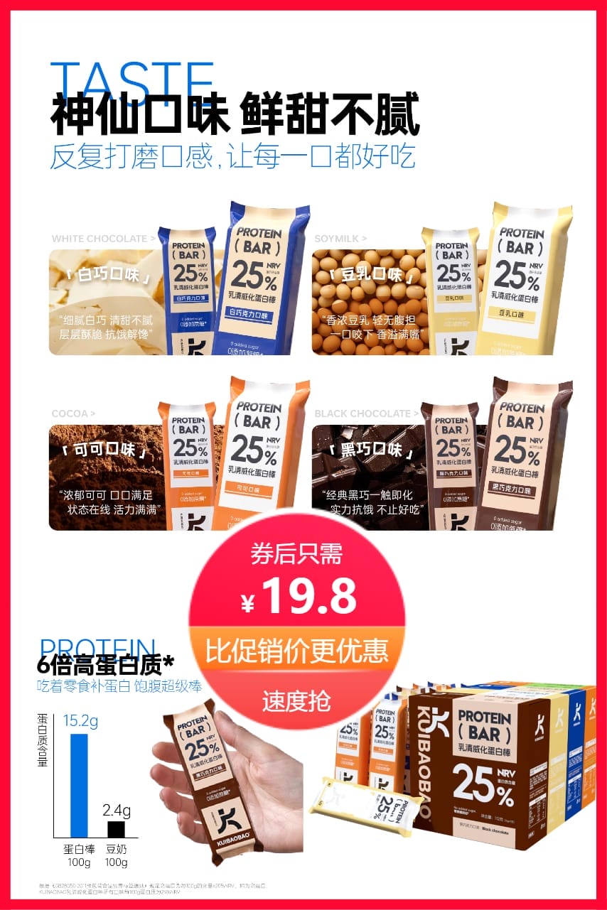 任选4件!【4种口味,高蛋白!!】即食补充能量的蛋白棒!科学运动,膳食营养,激发肌肉潜能,优质乳清蛋白补充能量,无添加蔗糖,0反式脂肪,口感美味,质地酥脆,高饱腹,易携带